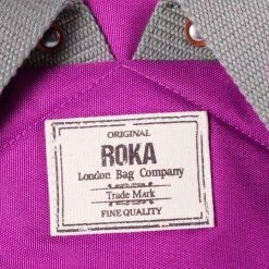 Designer Roka has brought you this unisex 100% weather resistant recycled canvas (triple coated) bag using violet pink tones. It measures 42cm(height) x 28cm(width) x 13cm(depth). All the bags come complete with roka packaging. The Roka Finchley A Medium Sustainable Canvas Backpack – Violet Pink holds and organises an impressive number of items, all within the roll-top design. Water-resistant and crafted from rPet materials, this backpack is sustainable, vegan and kind to the environment. There is a lightly padded laptop pocket that will fit your devices up to 17″ and the extra storage space holds a change of clothes, water bottle, snacks and more! The zip pocket on the front is perfect for things you need to access quickly whilst on the move. The back padding and cotton straps provide comfort to the back and shoulders for comfortable carrying, perfect for everyday use.