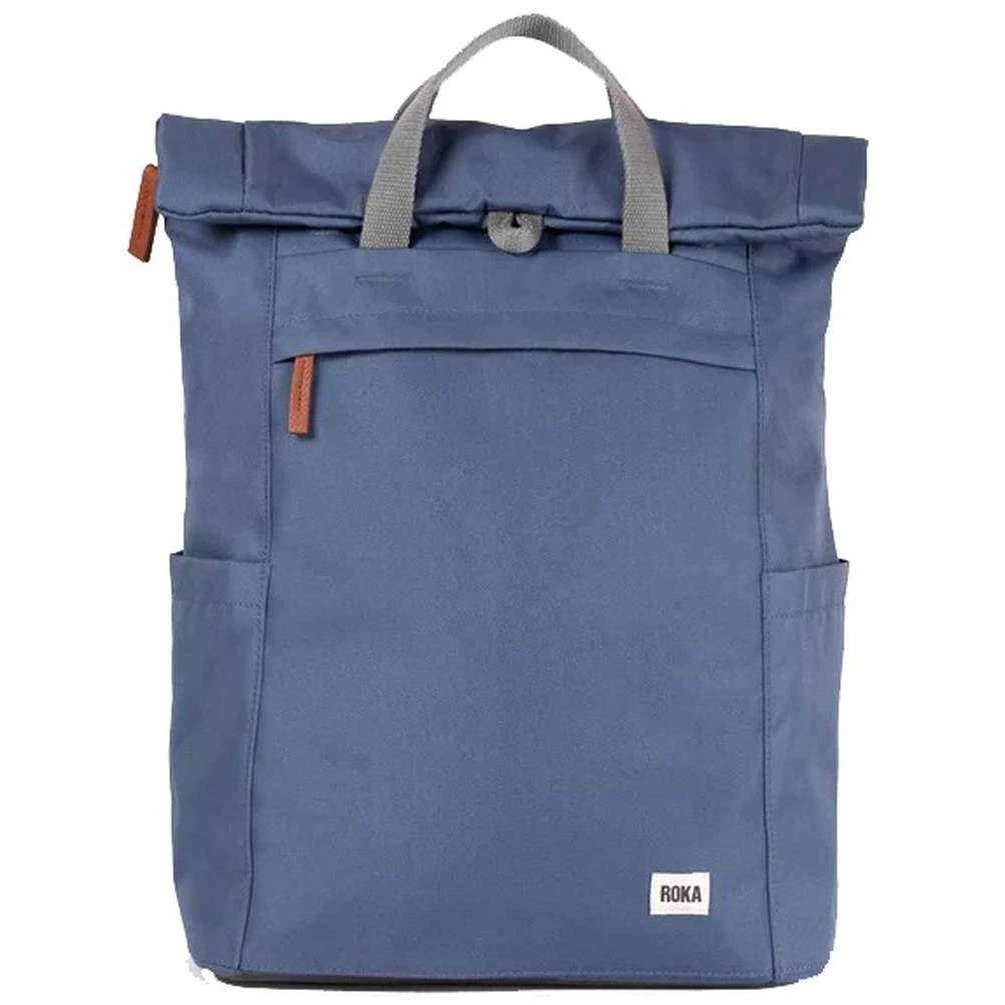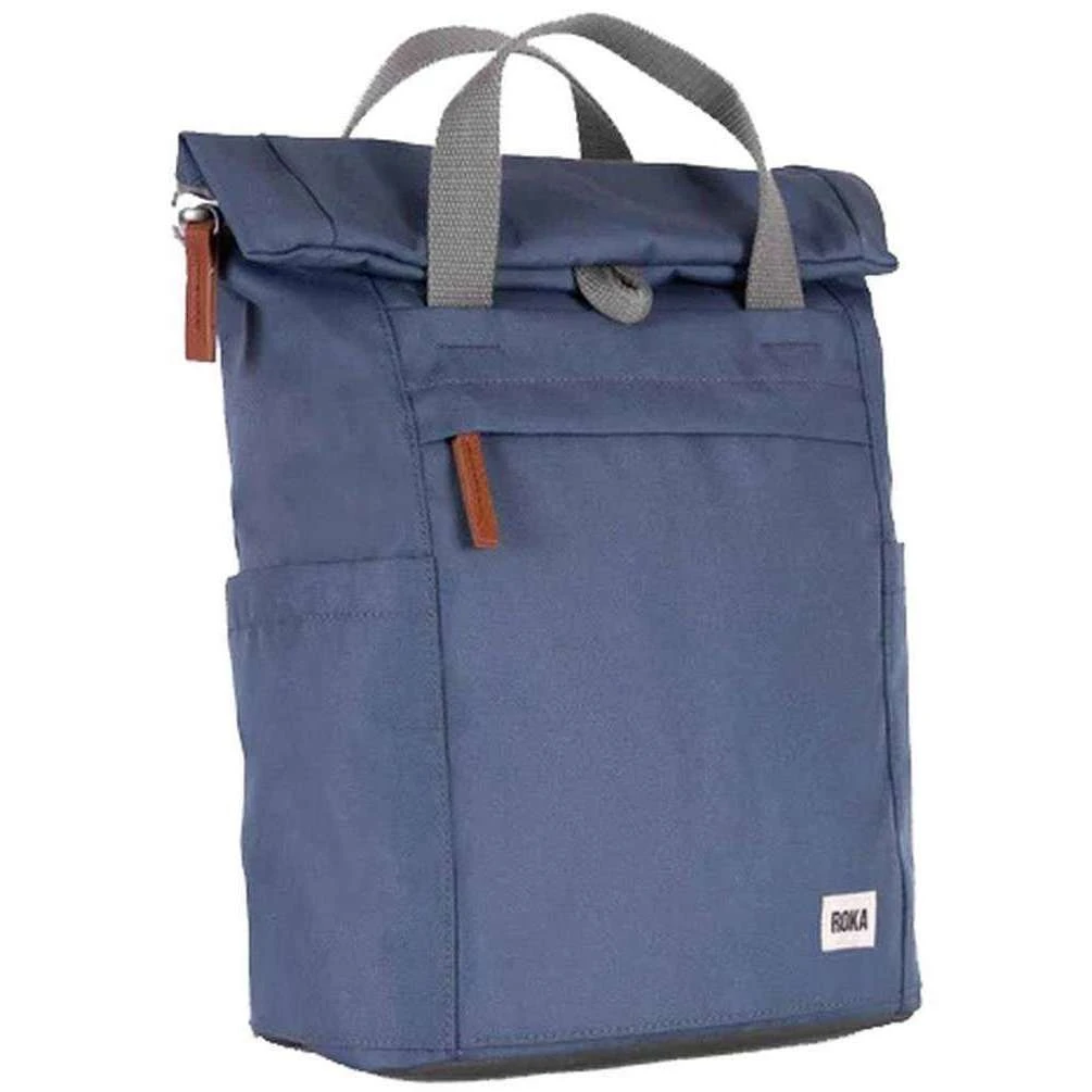 This unisex finchley a small sustainable canvas backpack by the brand Roka is made from 100% weather resistant recycled canvas (triple coated) and is showcased in blue. It measures 34cm(height) x 25cm(width) x 12cm(depth). All the bags come complete with roka tags. The Roka Finchley A Small Sustainable Canvas Backpack – Airforce Blue will keep your essentials organised throughout the day as it features a tablet sleeve, new inside pockets and water bottle pockets. There truly is ample storage for all your necessities. The roll top design and large zipped front compartment will keep everything secure whilst on the move. The comfortable straps offer you extra comfort and stability, while the water-resistant durable design with fully padded back panel provides comfort on the go. Made from rPET material, this bag has matte look and feel which helps to evoke the canvas. rPET material is used in plastic bottles which usually ends up in landfill or in the ocean, but it has been recycled to give the material new life and protect oceans. This bag is completely vegan making it ideal for everyday use.