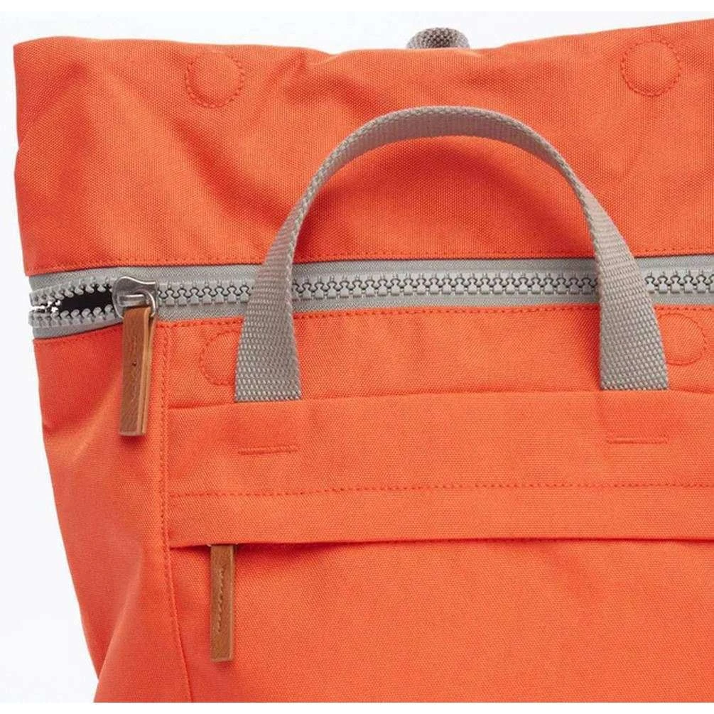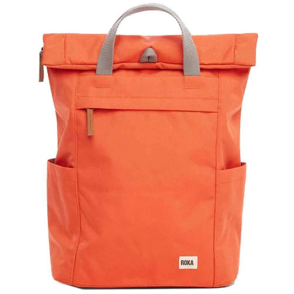 This finchley a small sustainable canvas backpack for men or women is fashioned by the brand Roka in a red colour and is made from 100% weather resistant recycled canvas (triple coated). It measures 34cm(height) x 25cm(width) x 12cm(depth). All the bags come complete with roka tags. The Roka Finchley A Small Sustainable Canvas Backpack – Neon Red will keep your essentials organised throughout the day as it features a tablet sleeve, new inside pockets and water bottle pockets. There truly is ample storage for all your necessities. The roll top design and large zipped front compartment will keep everything secure whilst on the move. The comfortable straps offer you extra comfort and stability, while the water-resistant durable design with fully padded back panel provides comfort on the go. Made from rPET material, this bag has matte look and feel which helps to evoke the canvas. rPET material is used in plastic bottles which usually ends up in landfill or in the ocean, but it has been recycled to give the material new life and protect oceans. This bag is completely vegan making it ideal for everyday use.