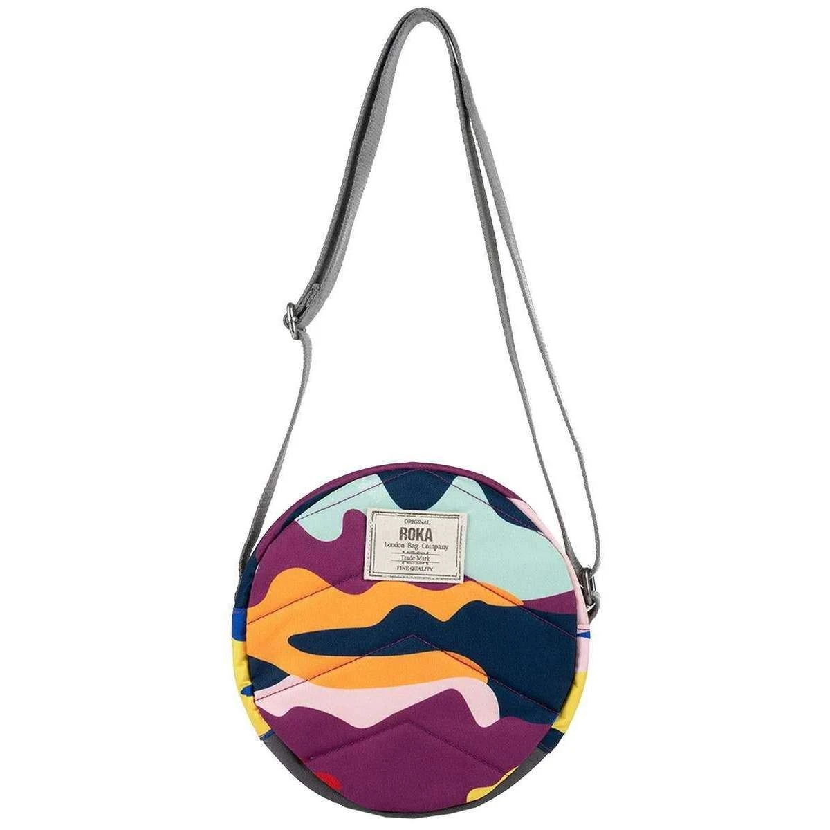 Designer Roka has brought you this unisex 100% weather resistant recycled canvas (triple coated) bag using multi-colour tones. It measures 23cm(height) x 23cm(width) x 7cm(depth). All the bags come complete with roka packaging. The Roka Paddington B Small Sustainable Canvas Camo Crossbody Bag – Multi-colour is the perfect round bag that suits any style! Extremely practical and comfortable, this design features three pockets and a sectional organiser to keep your items safe and secure. The front pocket with zipper makes finding important things like wallet and keys faster! Being water-resistant and durable, this elegant crossbody bag will be an indispensable accessory of your daily life! Expertly crafted from recycled materials, this bag is also kind to the environment, sustainable and vegan friendly.