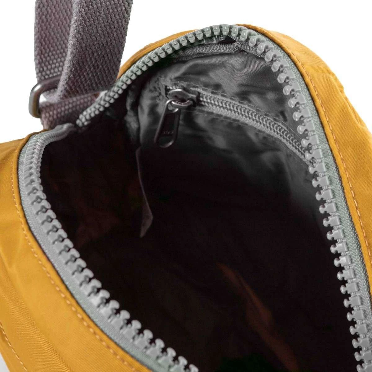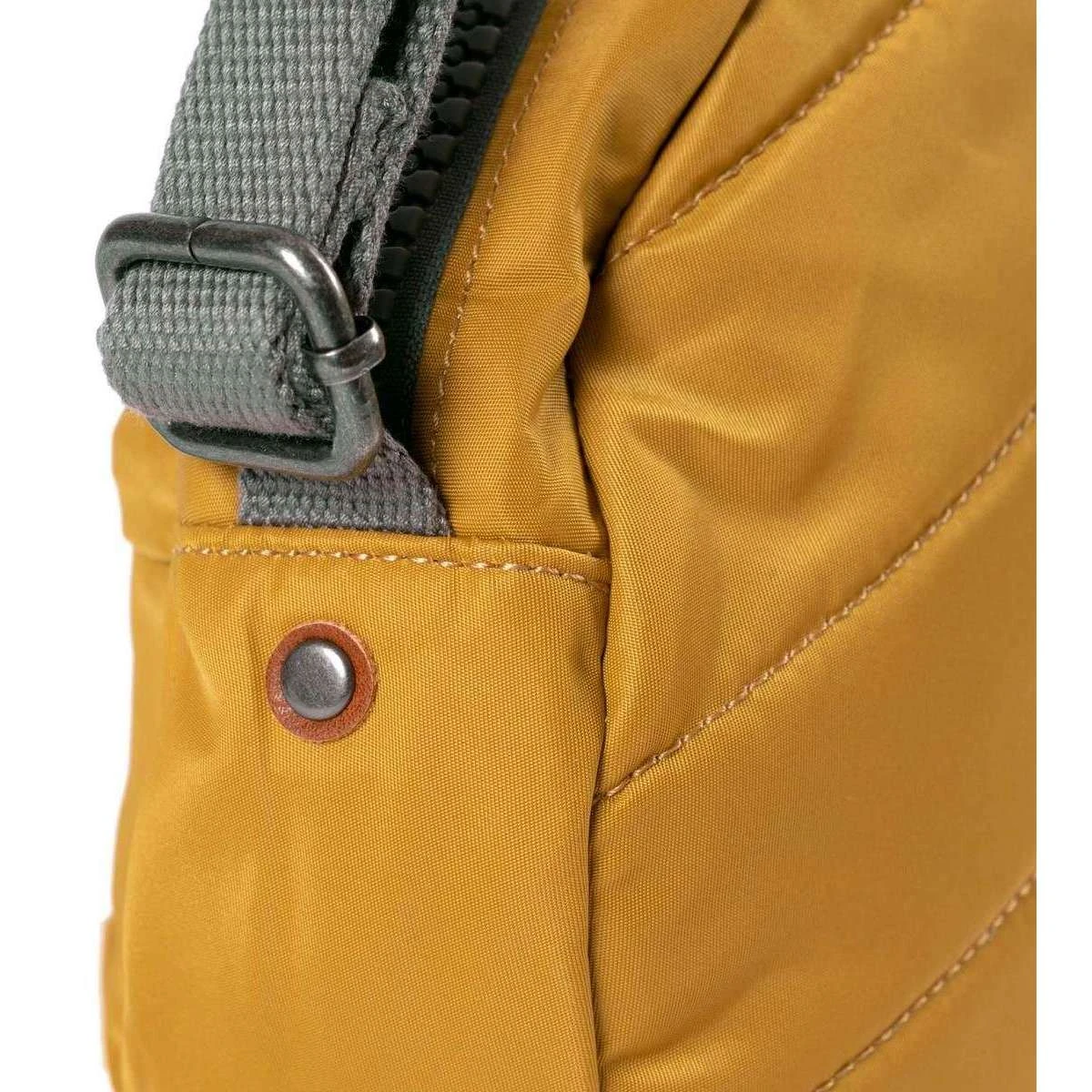 This unisex paddington b small sustainable nylon crossbody bag by the brand Roka is made from 100% weather resistant recycled nylon (triple coated) and is showcased in yellow. It measures 23cm(height) x 23cm(width) x 7cm(depth). All the bags come complete with roka packaging. The Roka Paddington B Small Sustainable Nylon Crossbody Bag – Corn Yellow is the perfect round bag that suits any style! Extremely practical and comfortable, this design features three pockets and a sectional organiser to keep your items safe and secure. The front pocket with zipper makes finding important things like wallet and keys faster! Being water-resistant and durable, this elegant crossbody bag will be an indispensable accessory of your daily life! Twelve or more plastic bottles are used to make the rPet Materials used in the construction of this bag so you can be sure it is sustainable, environmentally friendly and completely vegan.