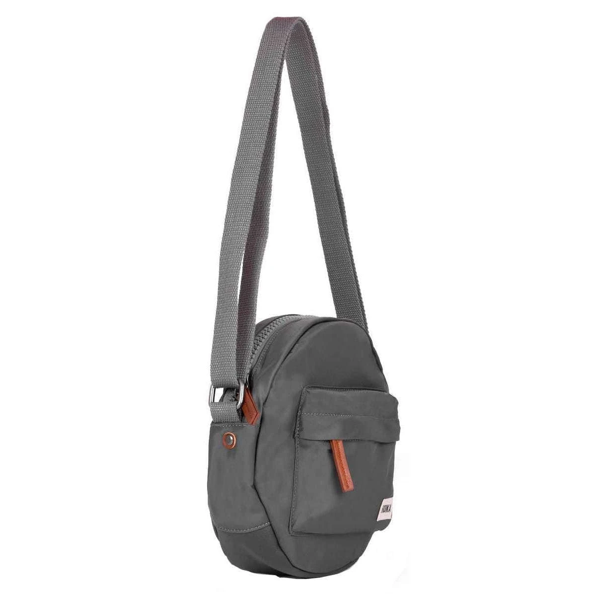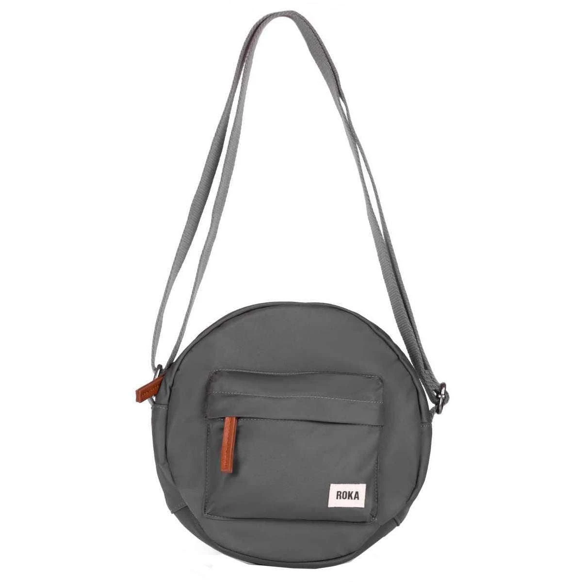 This paddington b small sustainable nylon crossbody bag for men or women is fashioned by the brand Roka in a grey colour and is made from 100% weather resistant recycled nylon (triple coated). It measures 23cm(height) x 23cm(width) x 7cm(depth). All the bags come complete with roka packaging. The Roka Paddington B Small Sustainable Nylon Crossbody Bag – Graphite Grey is the perfect round bag that suits any style! Extremely practical and comfortable, this design features three pockets and a sectional organiser to keep your items safe and secure. The front pocket with zipper makes finding important things like wallet and keys faster! Being water-resistant and durable, this elegant crossbody bag will be an indispensable accessory of your daily life! Twelve or more plastic bottles are used to make the rPet Materials used in the construction of this bag so you can be sure it is sustainable, environmentally friendly and completely vegan.