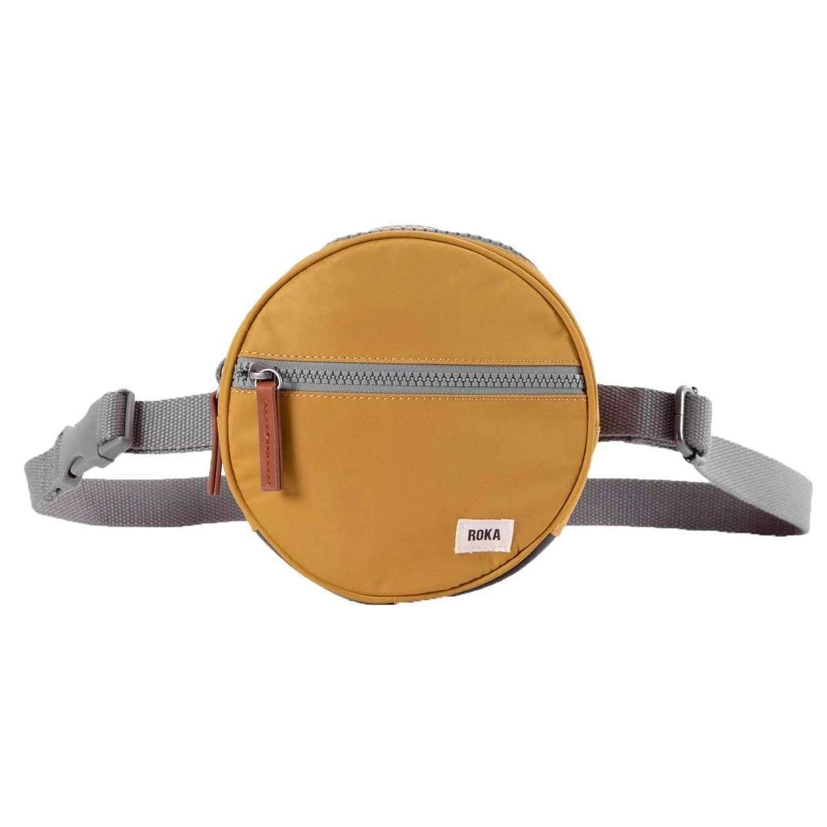 Perfect for men or women is this Roka corn yellow paddington d sustainable nylon hip bag, it is also made from 100% weather resistant recycled nylon (triple coated). It measures 16.5cm(height) x 16.5cm(width) x 6cm(depth). All the bags come complete with roka packaging. The Roka Paddington D Sustainable Nylon Hip Bag – Corn Yellow allows you a hands-free lifestyle! This convenient, cute and versatile hip bag, has a front zip pocket and an interior pocket, giving you plenty sectional organisers to organise your essentials. This round hip hugging bag is padded to add comfort as you wear. The adjustable waist strap provides perfect size options.