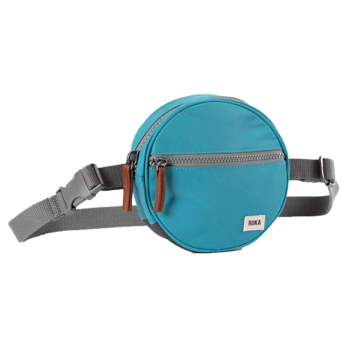 Brought to you by the brand Roka, this petrol blue unisex paddington d sustainable nylon hip bag is made from 100% weather resistant recycled nylon (triple coated). It measures 16.5cm(height) x 16.5cm(width) x 6cm(depth). All the bags come complete with roka packaging. The Roka Paddington D Sustainable Nylon Hip Bag – Petrol Blue allows you a hands-free lifestyle! This convenient, cute and versatile hip bag, has a front zip pocket and an interior pocket, giving you plenty sectional organisers to organise your essentials. This round hip hugging bag is padded to add comfort as you wear. The adjustable waist strap provides perfect size options.