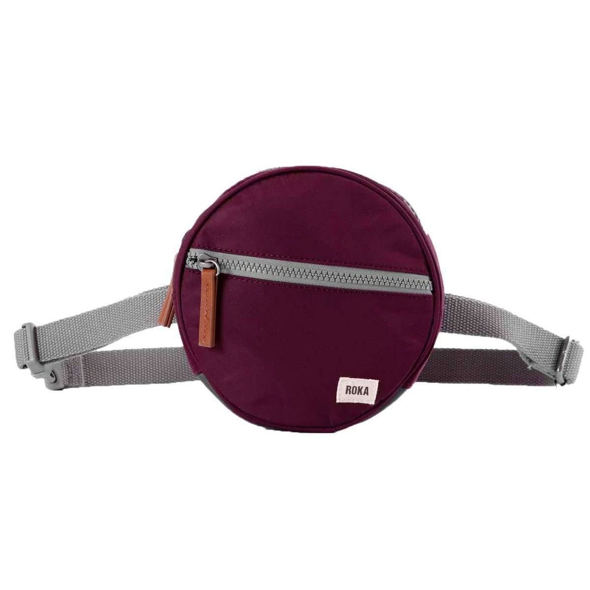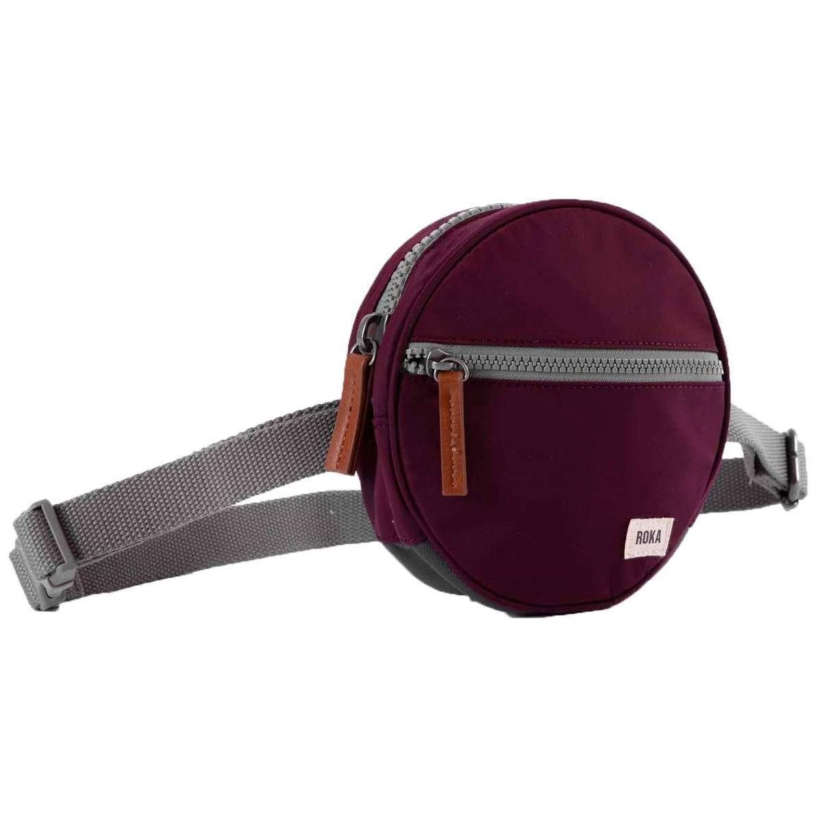 This unisex paddington d sustainable nylon hip bag has been made from 100% weather resistant recycled nylon (triple coated), featured in a burgundy colour and is from the brand Roka. It measures 16.5cm(height) x 16.5cm(width) x 6cm(depth). All the bags come complete with roka packaging. The Roka Paddington D Sustainable Nylon Hip Bag – Plum Burgundy allows you a hands-free lifestyle! This convenient, cute and versatile hip bag, has a front zip pocket and an interior pocket, giving you plenty sectional organisers to organise your essentials. This round hip hugging bag is padded to add comfort as you wear. The adjustable waist strap provides perfect size options.
