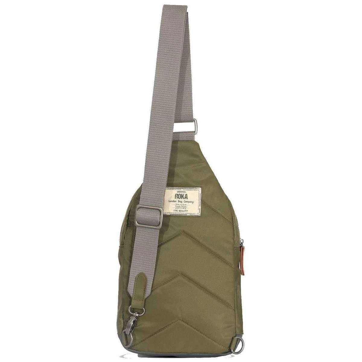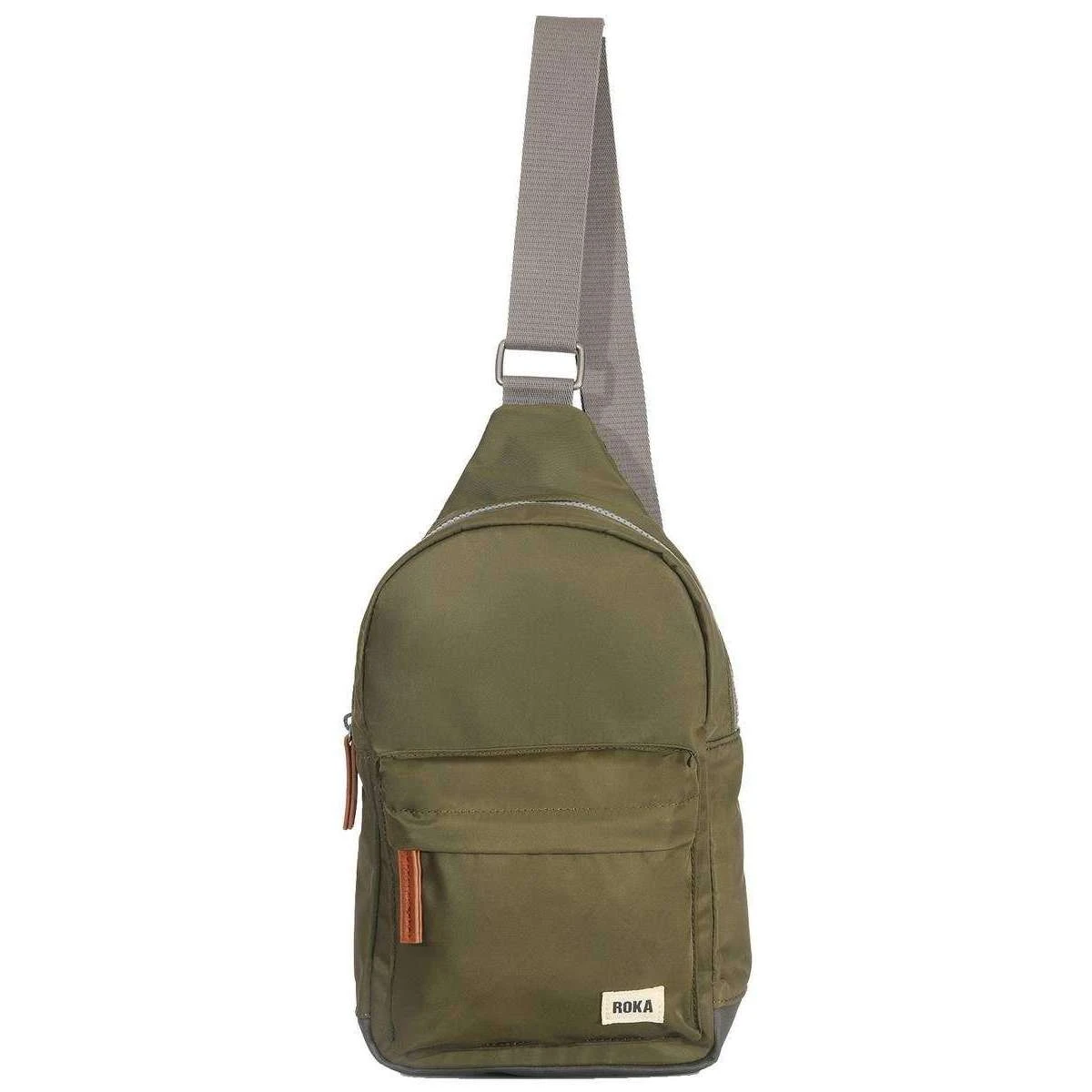 Manufactured from 100% weather resistant recycled nylon (triple coated) is this military green unisex willesden b sustainable nylon scooter bag by the designer Roka. It measures 39cm(height) x 19cm(width) x 7cm(depth). All the bags come complete in roka packaging. The Roka Willesden B Sustainable Nylon Scooter Bag – Military Green is the perfect cross body bag, well suited for a busy person on the go. Commuting, studying, gym or a well needed trip, this bag features an organisational panel on the inside and a front zip pocket on the outside, perfect for keeping organised on the move. This durable scooter bag also features a secret pocket on the back, which secures your valuables allowing you to be worry free and hands free on the go. Straps become softer and more comfortable with each use and can be clipped to the left or right. Crafted from rPet recycled material it is environmentally friendly, water-resistant, durable and completely vegan.