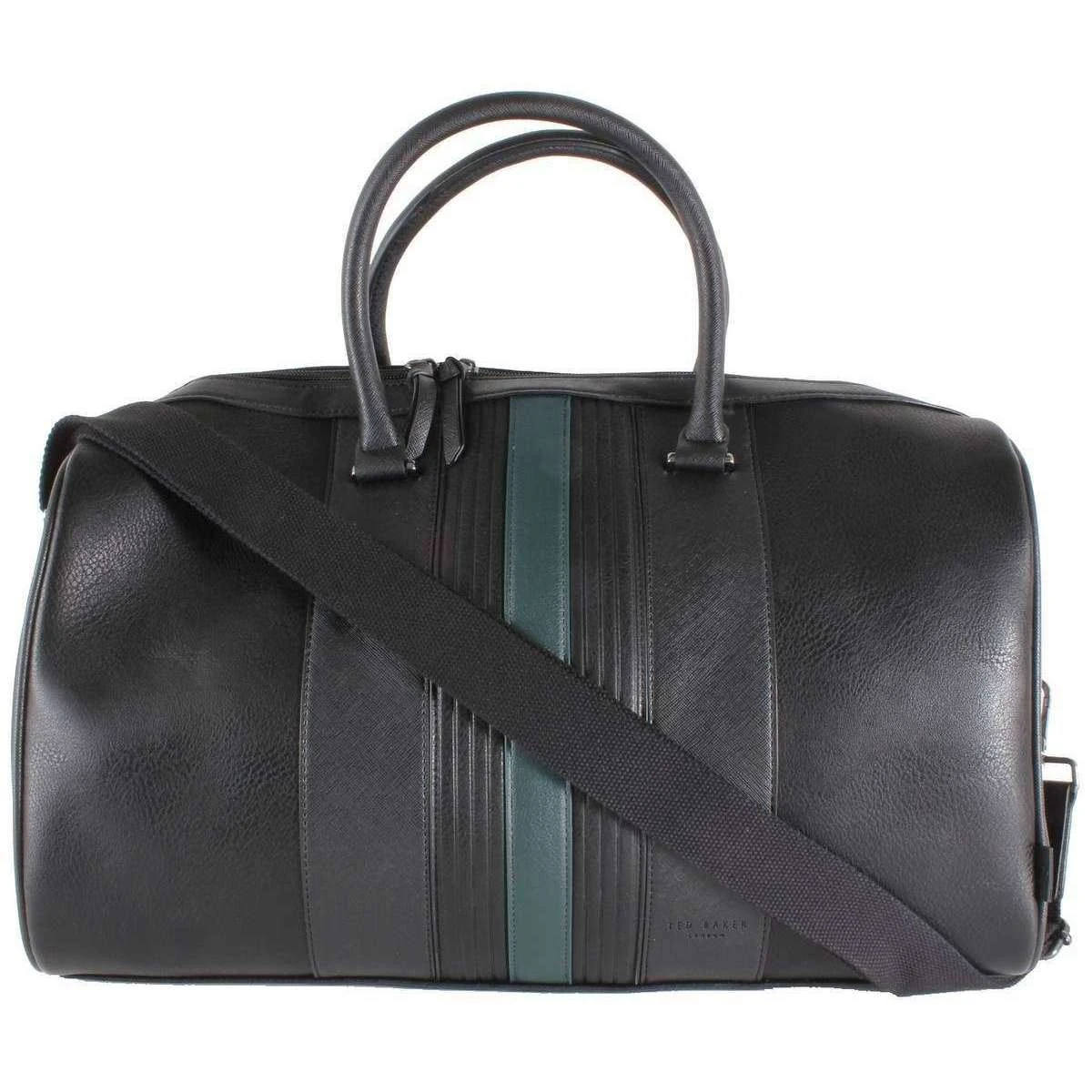 This men’s evyday striped holdall by the brand Ted Baker is made from 100% polyurethane shell and 100% polyester lining and is showcased in black. It measures 33cm(height) x 47cm(width) x 20cm(depth). All the bags come complete with ted baker tags. The Ted Baker Evyday Striped Holdall – Black makes for the perfect overnight bag or small weekend away. Its large main section is ideal for storing your possessions and it also offers smaller pockets for your valuables. It exhibits a very stylish exterior with a stunning striped design finished with Ted Baker branding. It can be carried using its 2 carry handles and can also be carried over the shoulder with its adjustable strap that can be attached when needed.