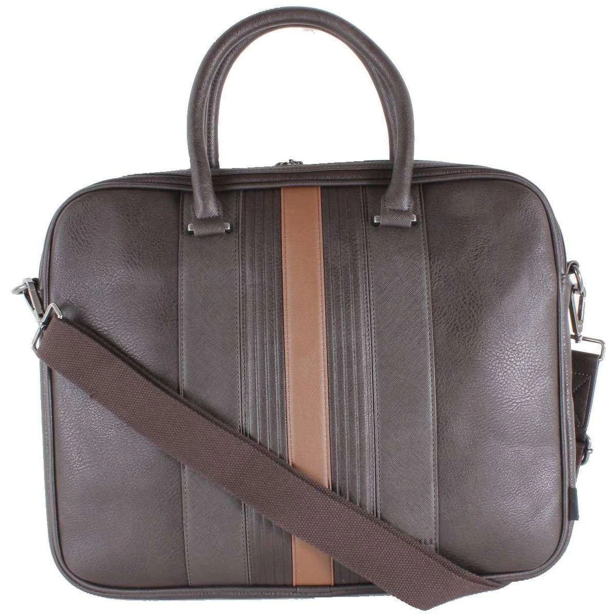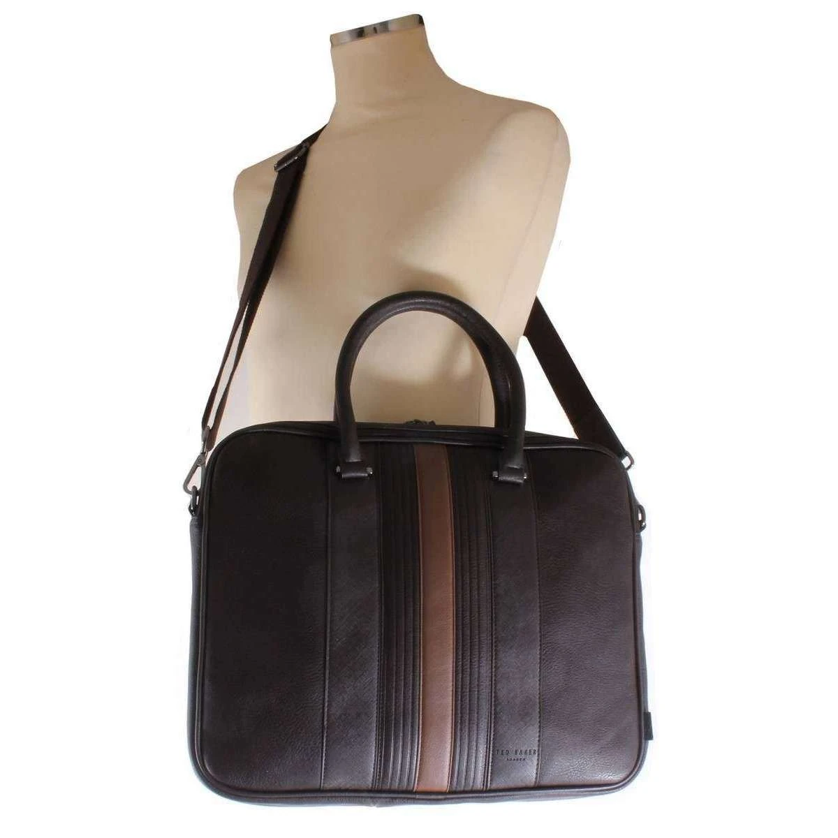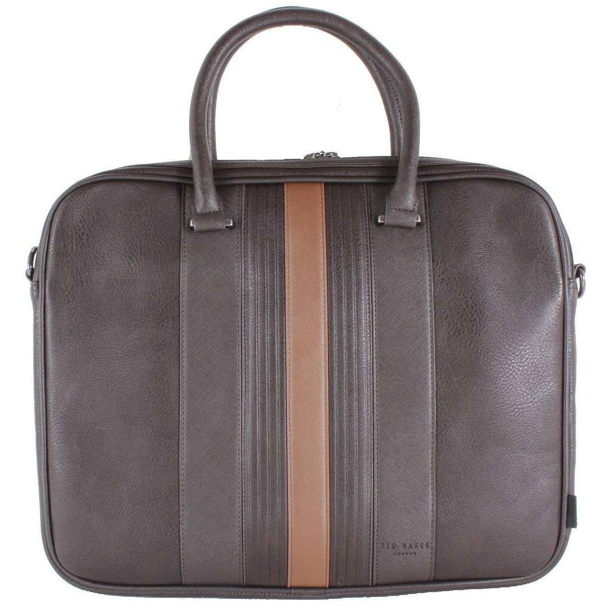 Using brown 100% polyurethane shell and 100% polyester lining, this nevver striped document bag by Ted Baker is perfect for men and a must have. It measures 33cm(height) x 41cm(width) x 4cm(depth). All the bags come complete with ted baker tags. The Ted Baker Nevver Striped Document Bag – Chocolate Brown is the ideal piece if you carry a laptop on a day to day basis. Its stylish design ensures you look the part as well as providing safe and secure storge for your possessions. Inside is a compartment perfect to store a small laptop or tablet with a tab to keep it from falling out. It also has other compartments for folders or other documents so this is a must have if you are a worker looking to travel smart and stylish. It has 2 carry handles as well as an adjustable shoulder strap that can be attached as and when you need it. Finished with Ted Baker branding this is an essential buy.
