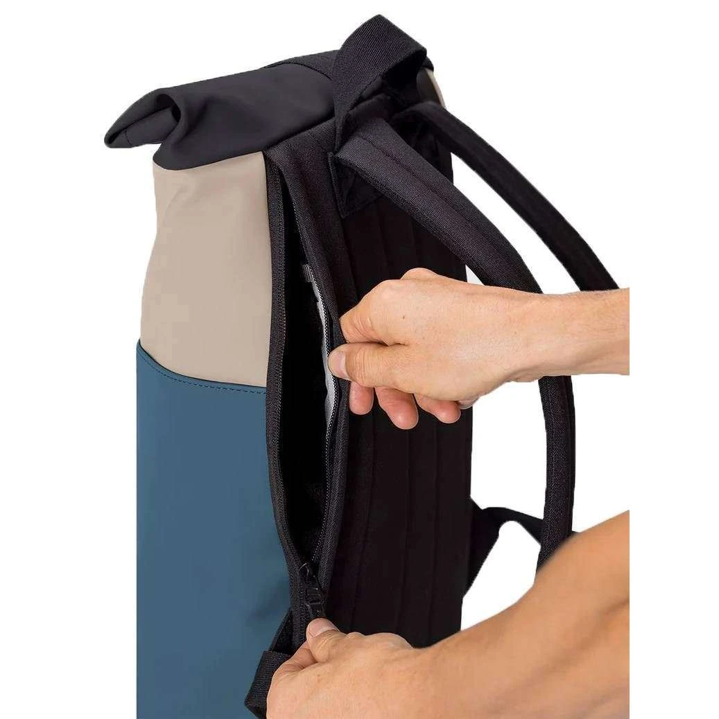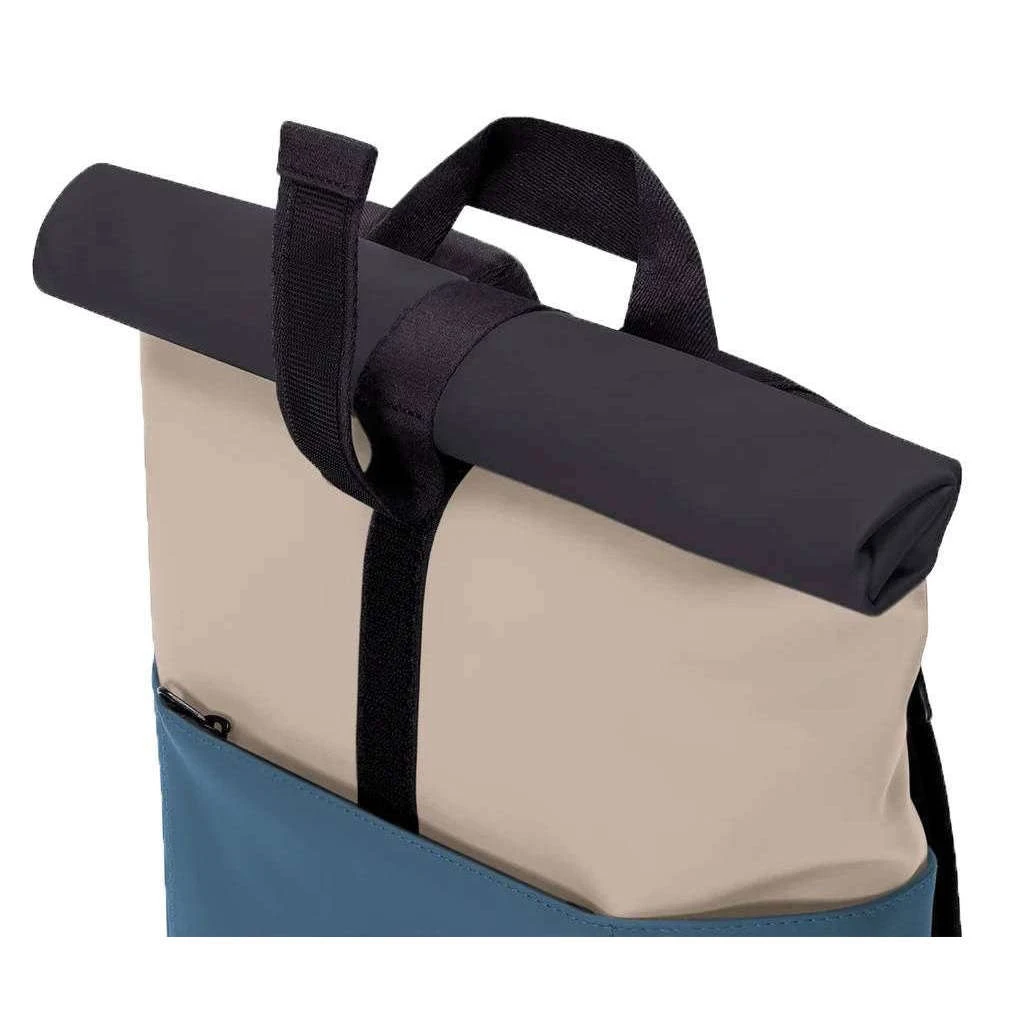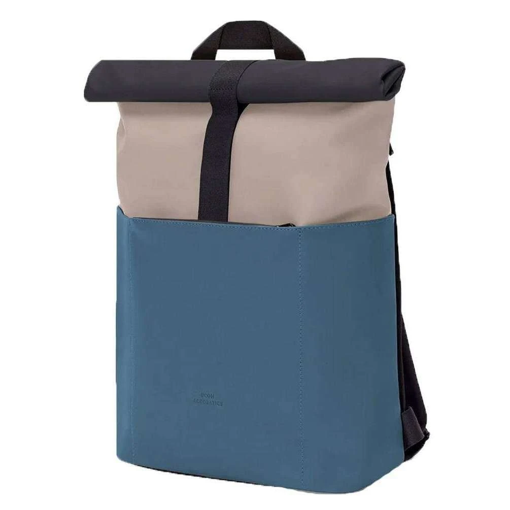 This unisex lotus hajo mini backpack by the brand Ucon Acrobatics is made from recycled polyester (rpet) and tpe and is showcased in beige. It measures 42cm(height) x 28cm(width) x 10cm(depth). All the bags come complete with ucon acrobatics packaging. The Ucon Acrobatics Lotus Hajo Mini Backpack – Nude/Petrol Blue has been expertly manufactured from sustainable materials making this backpack waterproof and completely vegan, saving the planet one bag at a time. A tree is also planted with every bag purchase. Featuring a roll top system with a hook and loop fastener, fast access to the main compartment via a zip, two pockets on the outside, a neoprene laptop compartment (16”) compartment inside, two mesh pockets, an additional elastic band bottle holder and key strap, it truly has room for all your essentials. Comfortable carrying couldn’t be made easier as it has a reinforced back, padded and adjustable shoulder straps and a padded bottom for stability. Stylish and waterproof, you couldn’t find a more suitable backpack.